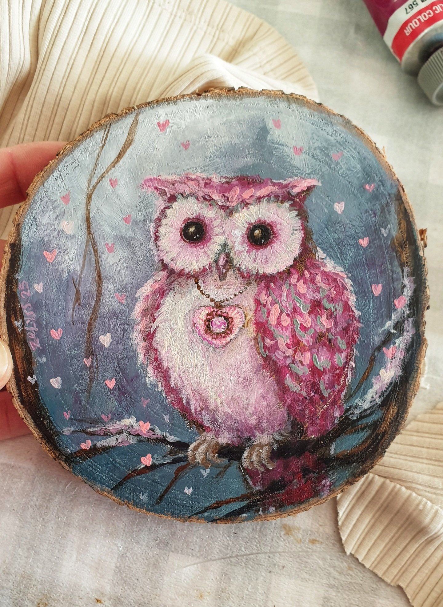 ✿Medium: Acrylics on real wood slice (ready to hang)